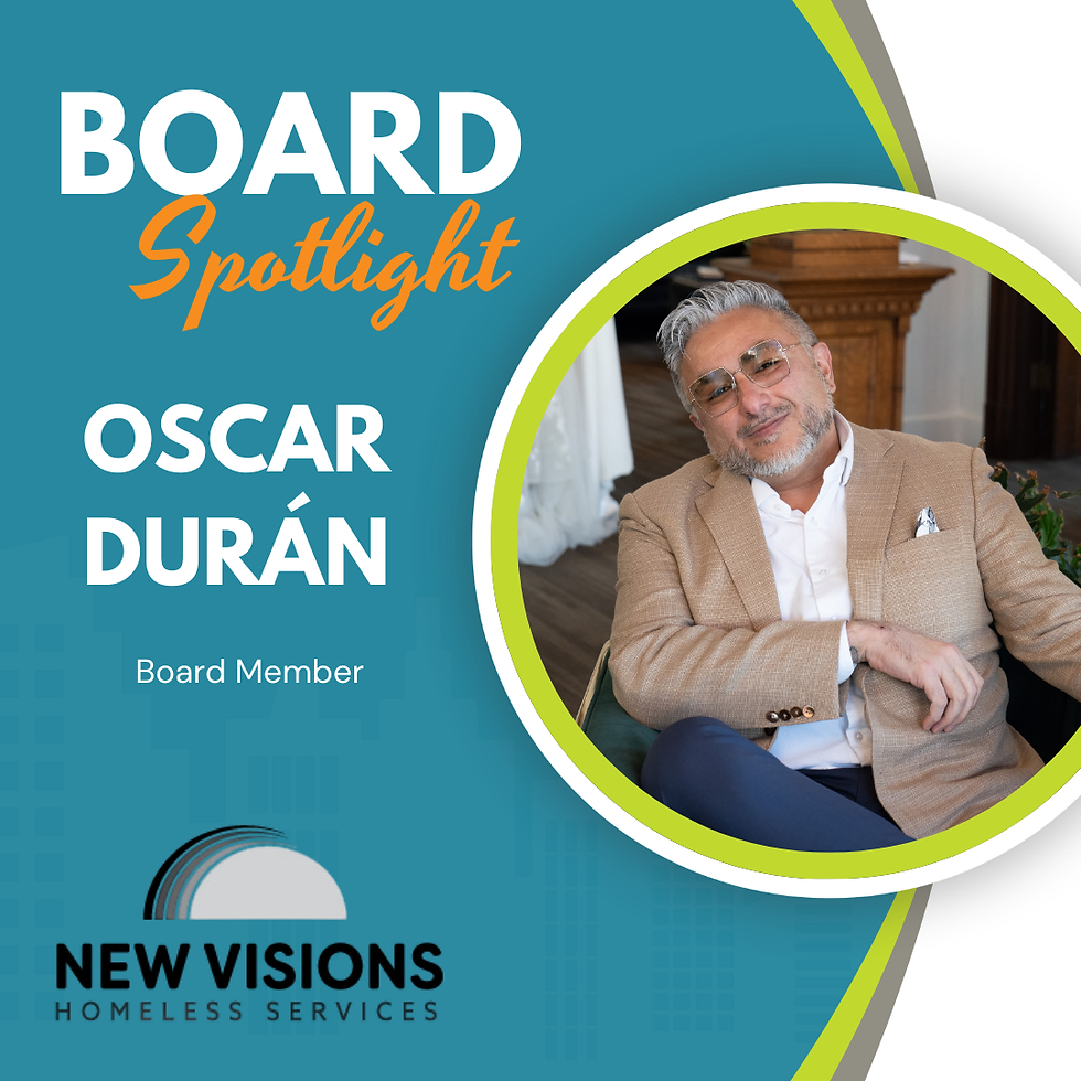 When asked about hobbies and free-time, Oscar shares that he loves spending time on music, art, and his children, ages 6, 10, and 12. He also enjoys writing and renovating old buildings. But truly, Oscar says, doing community work is his passion. When reflecting on the mission of New Visions, Oscar says, “You can just feel it when you walk into the door. All of the staff from Brandy to the caseworkers to the maintenance crew loves and respects the guests and each other. It all comes down to how we treat humans, and y’all are exceptional at it!” We’re incredibly honored that a leader like Oscar sees us that way, and we’re privileged to have him on our Board. Thank you, Oscar, for your service to New Visons and to our entire community!
